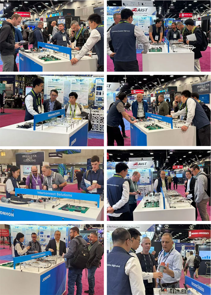 JONHON showcased its liquid cooling solutions and integrated data center interconnect solutions at the exhibition under the theme Keep Cool, Keep Ahead. This combined cooling+interconnection solution portfolio not only fully aligns with the orientation of green and low-carbon development of the conference but also meets the demand for efficient and sustainable development amid the surging computing density of post-exascale supercomputing. JONHON intuitively demonstrated to global industry partners on-site the integrated technical support that balances heat dissipation efficiency, high-speed transmission, and interconnect stability.